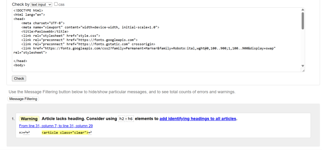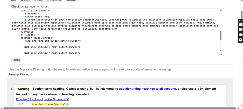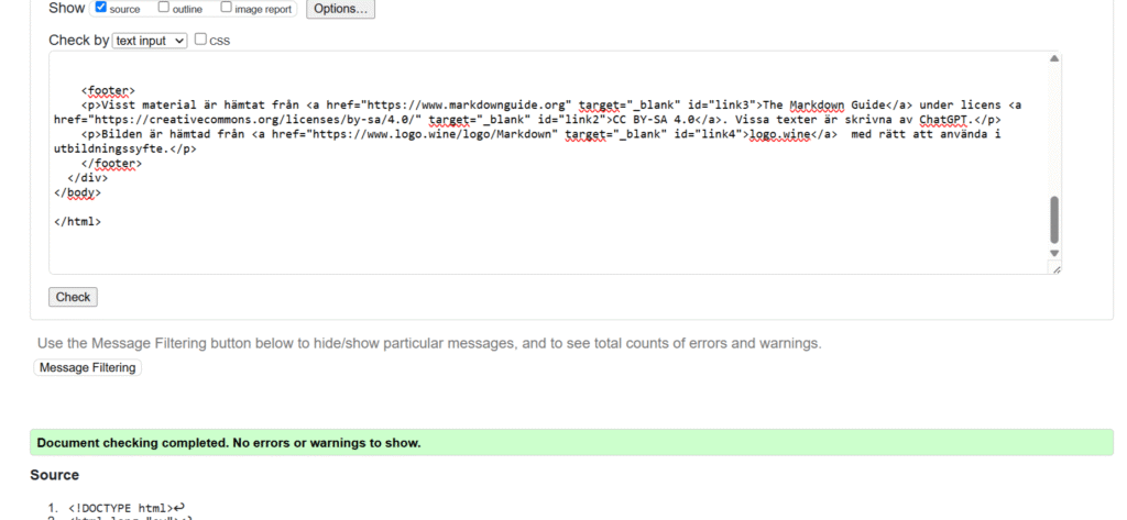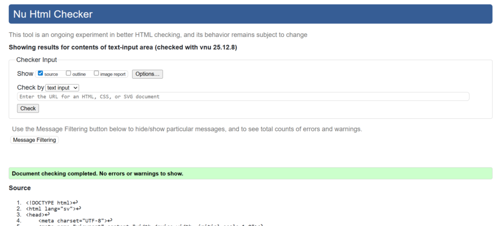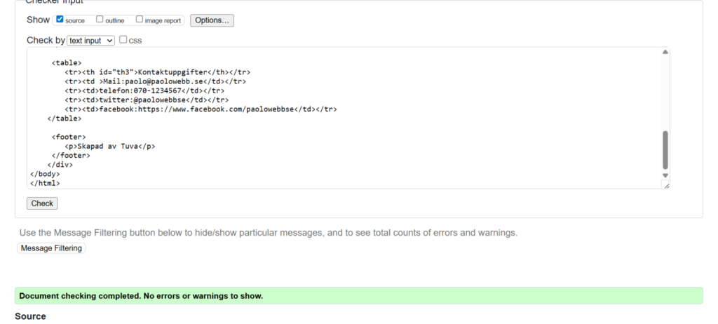 För att fixa denna koden så började jag med att ändra så att det var en CSS kod för sig och sedan kunna validera koderna för sig. Jag ändrade små stav fel här och där och ändrade så att det var rätt språk. Denna uppgiften var hyfsat lätt men blev lite krånglig när man först hade inställt att den skulle rätta en CSS kod på sin HTML kod.