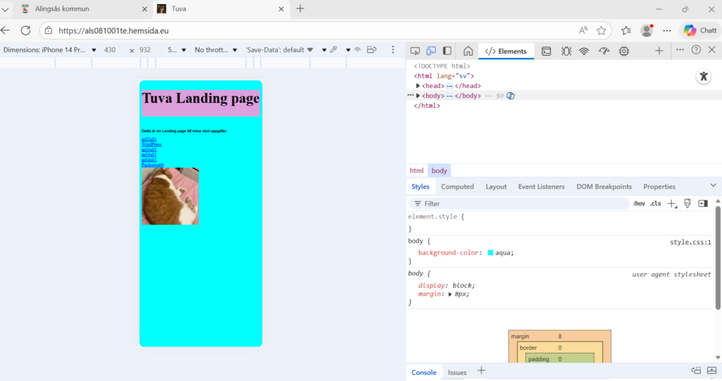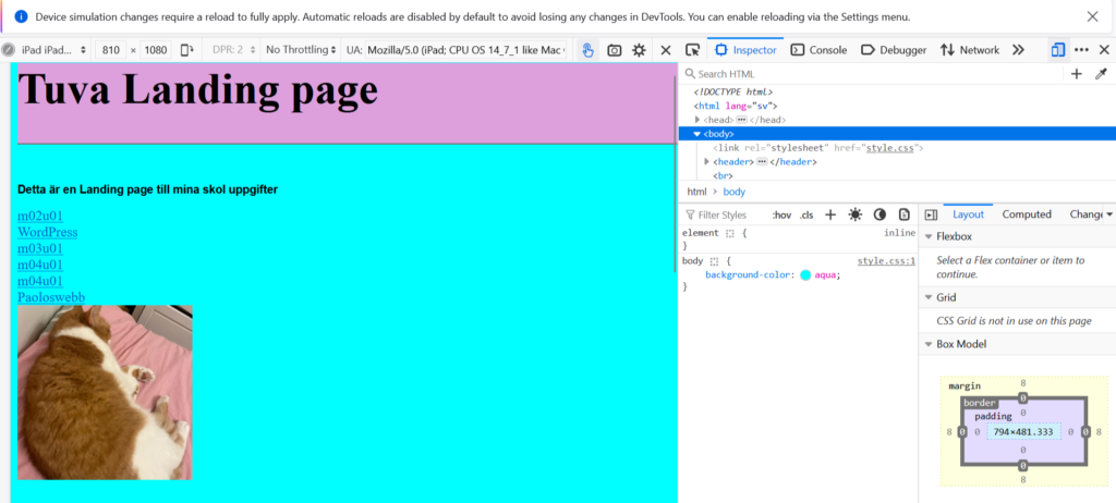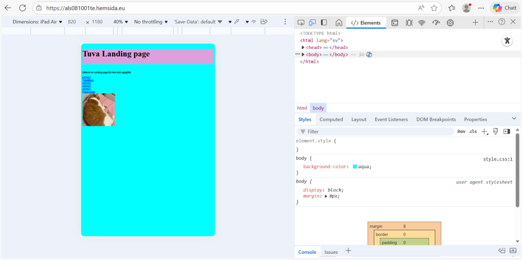 Det har varit vissa delar som har varit lite svårt med detta moment som fatta hur man gjorde tabellen men när jag väl fattade vad jag skulle göra var det rätt enkelt. Sen finns det lite annat jag har det kommit upp lite små problem som hur bokstäverna på min webbsida ändrades till skumma tecken. Men det andra har jag ändå fattat och det har varit rätt kul när man fattar sakerna.